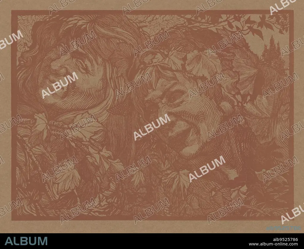 Two bacchae or maenads, female worshippers of the fertility god Bacchus They are surrounded by vine leaves One of them wears a wreath, Two bacchants surrounded by vine leaves, print maker: Johannes Josephus Aarts, 1881 - 1907, paper, h 180 mm × w 240 mm