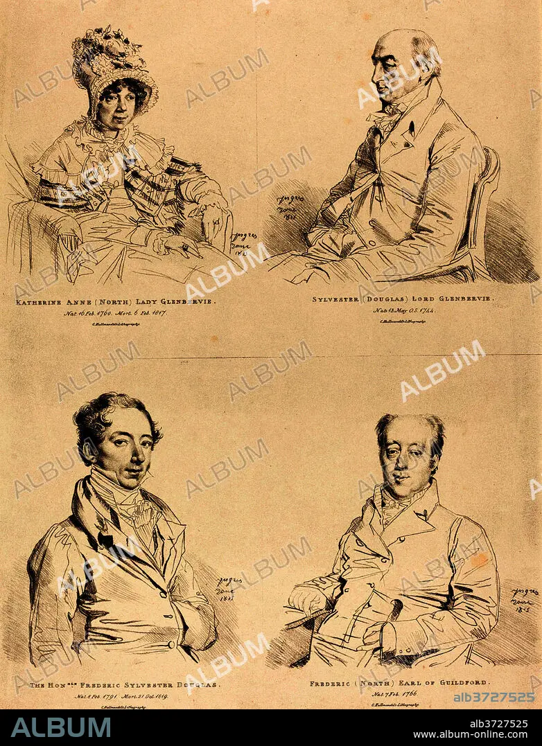 JEAN AUGUSTE DOMINIQUE INGRES. Sylvester (Douglas) Lord Glenbervie; Katherine Anne (North) Glenbervie; Frederic (North) Earl of Guilford; Frederic Sylvester Douglas. Dated: 1815. Medium: lithograph, four portraits printed on one sheet.