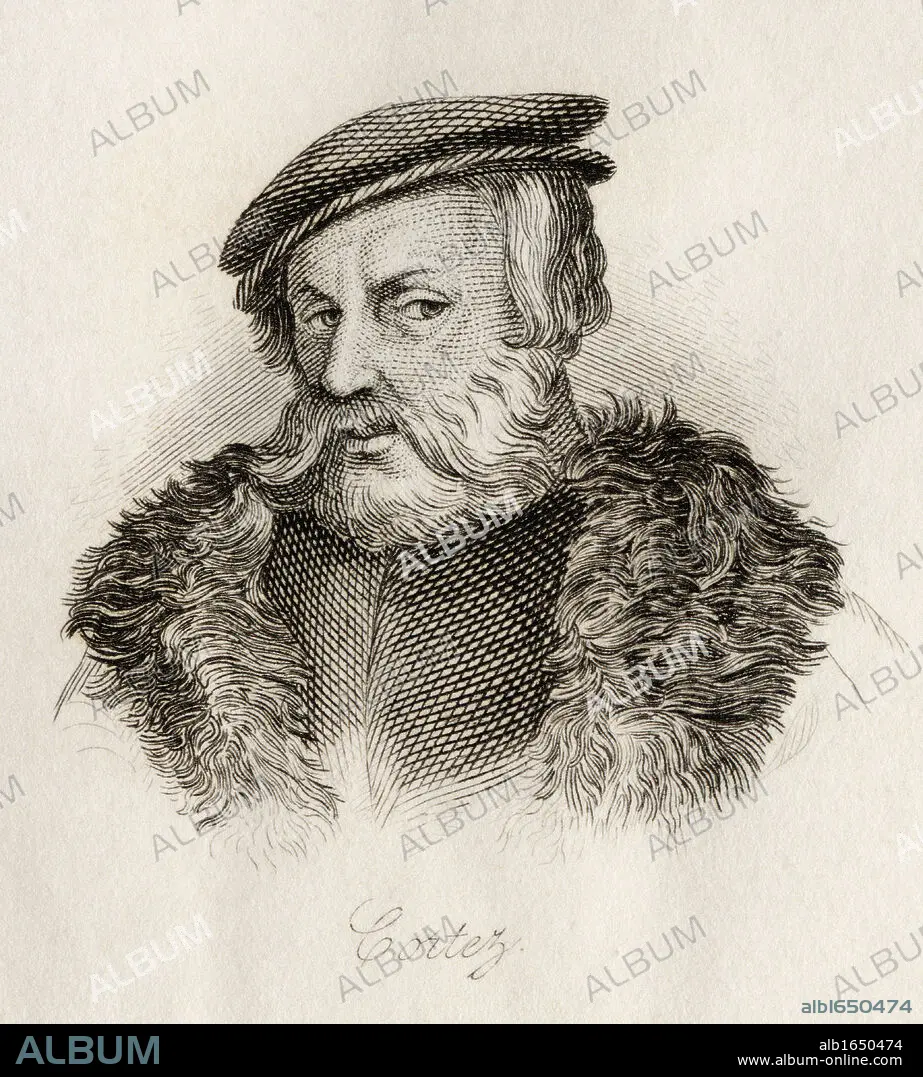 Caption: Hernán Cortes Marques del Valle de Oaxaca, 1485 to 1547. Spanish conquistador. From the book Crabbs Historical Dictionary published 1825