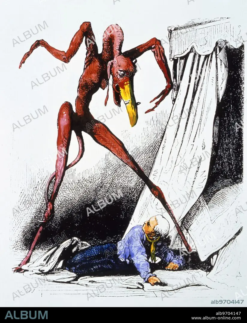 Caption: Demon used as a woodengraving illustration by Collin de Plancy in his 'Dictionnaire Infernal' of 1863, but derived from a painting by Salvator Rosa, 'The Nightmare.'