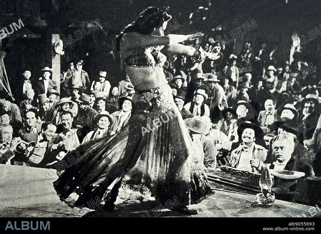 Caption: Film still from 'Salome Where She Danced' starring Yvonne De Carlo, Rod Cameron, David Bruce, and Walter Slezak.