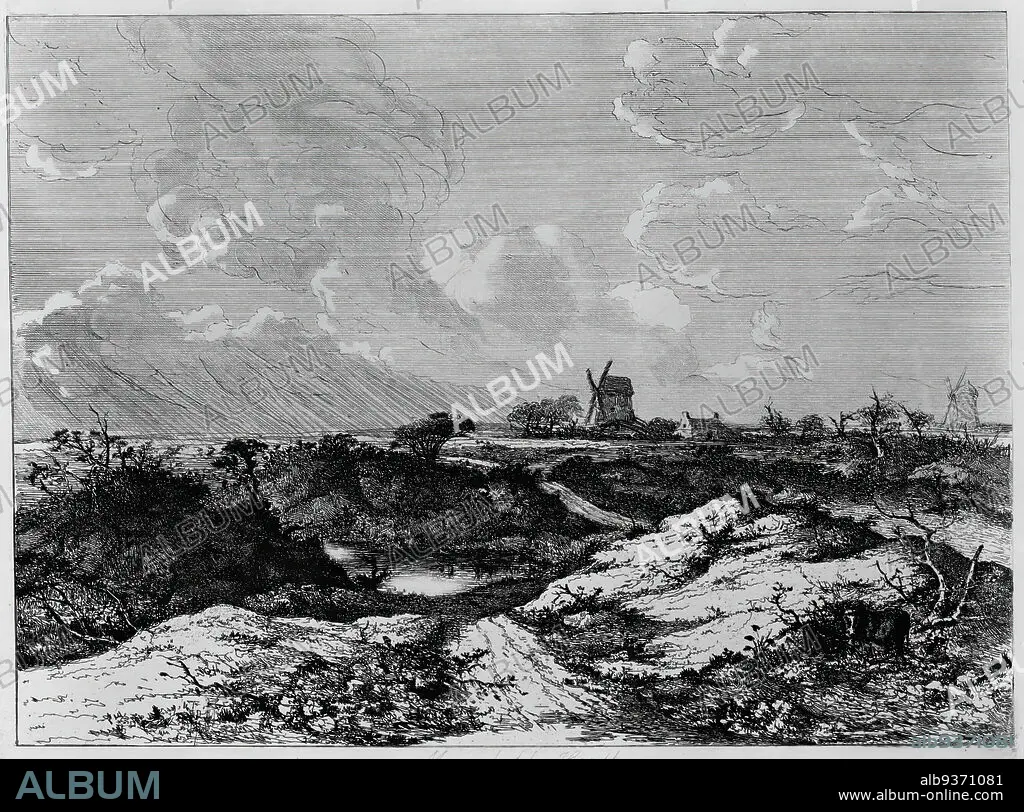 Caption: Mousehold Heath, Norwich, John Crome, British, 1768-1821, Etching on wove paper, ca. 1818-1820, Plate: 22 1/2 x 30 1/2 in., 57.2 x 77.5 cm, England, etching, landscape, windmill