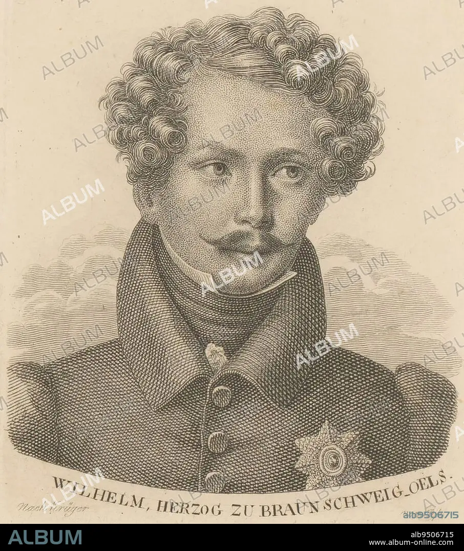 Portrait of William August Lodewijk Maximilian Frederick of Brunswick-Wolfenbüttel-Bevern, Ernst Ludwig Riepenhausen, after Arthur F. Krüger, 1775 - 1840, print maker: Ernst Ludwig Riepenhausen, (mentioned on object), Krüger, (mentioned on object), 1775 - 1840, paper, engraving, h 105 mm - w 89 mm