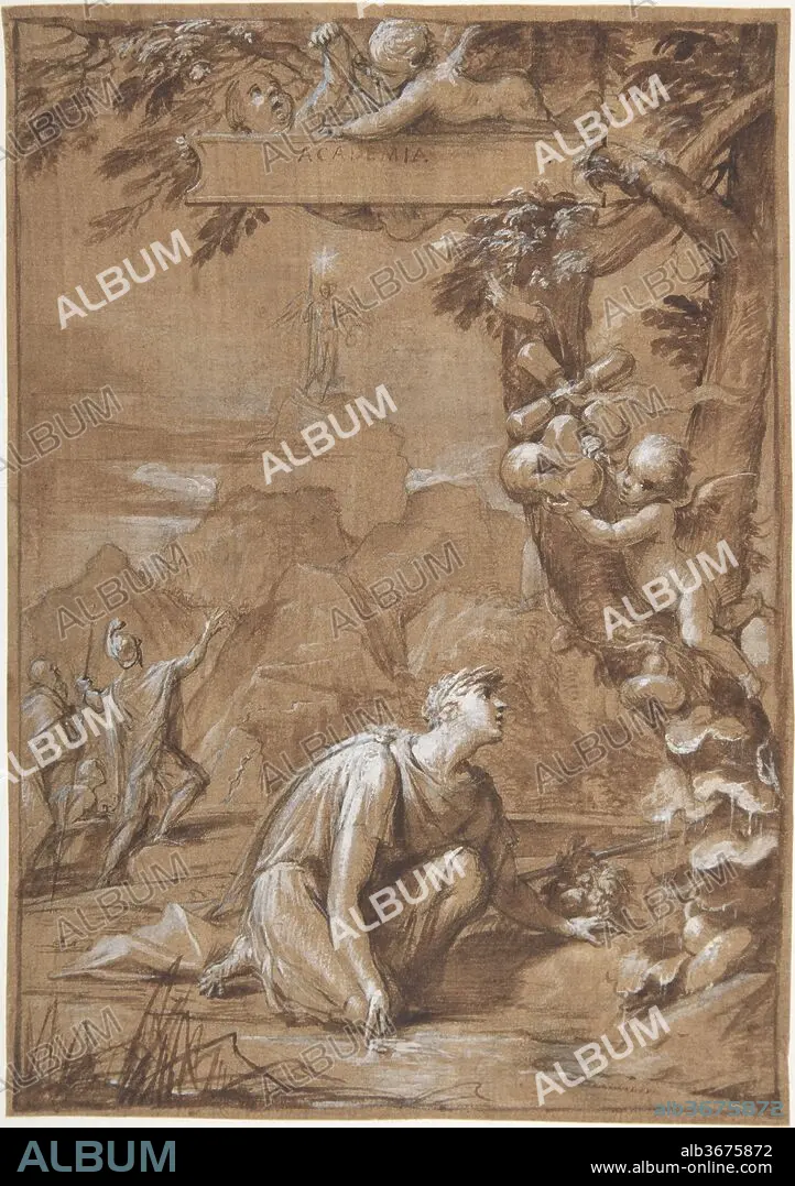 Caption: Allegorical Composition with a Young Man Kneeling before a Tree. Artist: Giovanni Angelo Canini (Italian, Rome 1615-1666 Rome). Dimensions: 9-7/16 x 6-5/8 in. (24.0 x 16.9 cm). Date: 1615-66.