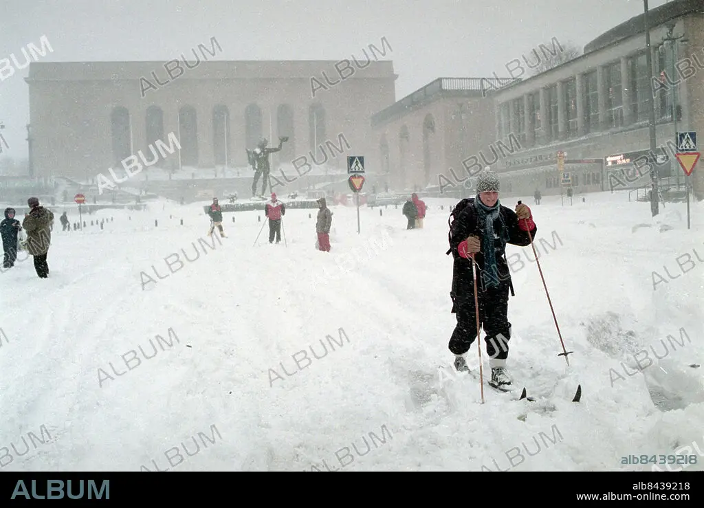 Göteborg - Snökaos i Västsverige 1995-11-17 skidåkare på Avenyn. Foto: Kamerareportage *** Local Caption *** . KAMERAREPORTAGE