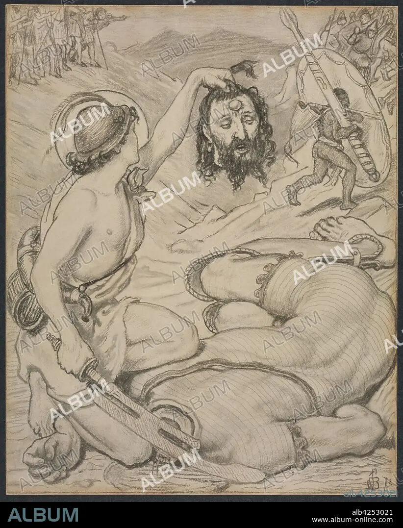 David and Goliath, Cartoon for Stained Glass Window at Jesus College, Cambridge, 1872. Ford Madox Brown (British, 1821-1893). Gray-black and brown-black charcoal, and graphite on light- to medium-weight Japanese paper; sheet: 52 x 41.7 cm (20 1/2 x 16 7/16 in.).