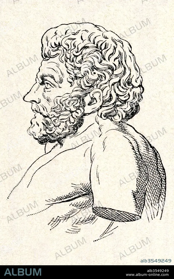 Caption: Aesop, c. 620 – 564 BC. Ancient Greek fabulist or story teller. From Enciclopedia Ilustrada Segui, published c. 1900