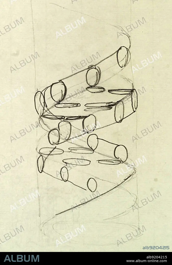 Caption: Francis Crick's original sketch of the structure of DNA, made in 1953. Later that same year Crick and James Watson published the watershed paper "Molecular Structure of Nucleic Acids" in the journal Nature. Rosalind Franklin's x-ray images of DNA were crucial to Watson and Crick finalizing the structure of the molecule. Watson, Crick and Maurice Wilkins (Franklin's colleague at King's College) won the Nobel Prize in 1962 for the discovery of DNA's structure. Unfortunately, Franklin had died of cancer by then, and was thus ineligible for the award.