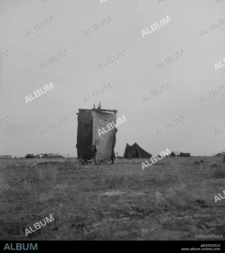 Title: Unsanitary privy in potato pickers' camp near Shafter, California,1937. Creator: Dorothea Lange.