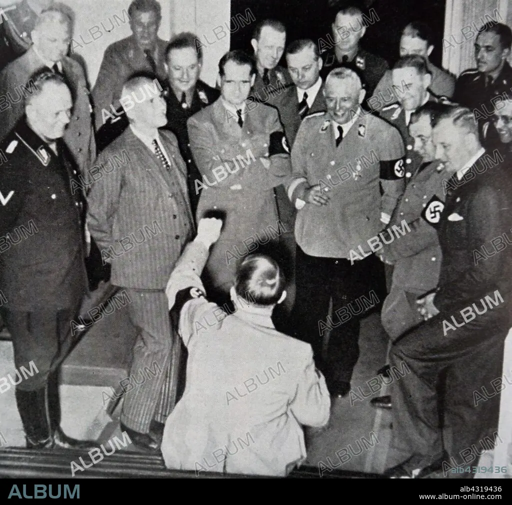 Title: Adolf Hitler, with Nazi leaders including Rudolf Hess, Robert Ley and Martin Bormann.