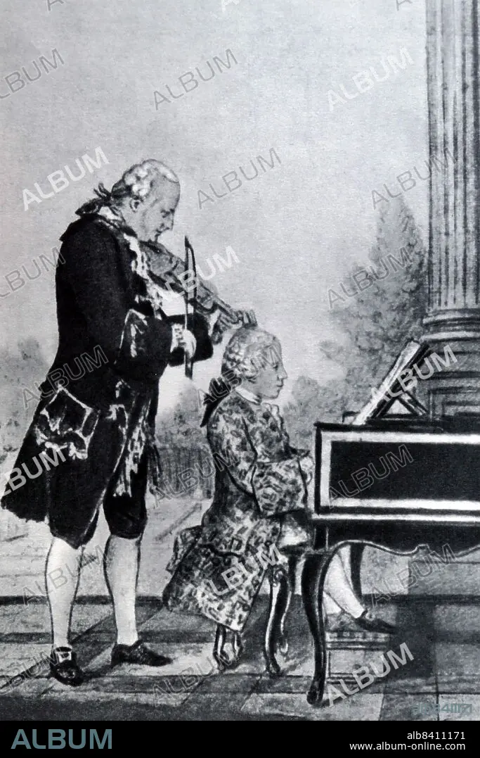 Caption: Leopold Mozart plays with his his son Wolfgang. Johann Georg Leopold Mozart (November 14, 1719 - May 28, 1787) was a German composer, conductor, music teacher, and violinist. Mozart is best known as the father and teacher of Wolfgang Amadeus Mozart (27 January 1756 - 5 December 1791), was a prolific and influential composer of the Classical period