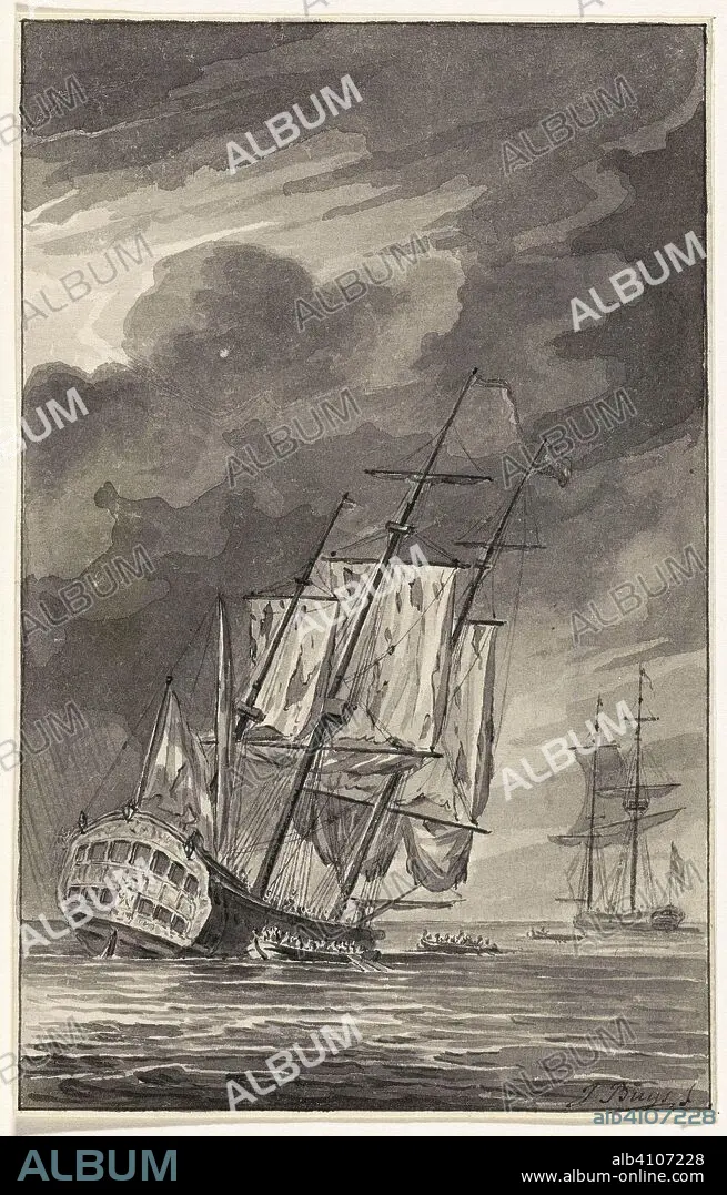 Caption: The sinking ship Holland, 1781. Draughtsman: Jacobus Buys (signed by artist). Dating: 1781 - 1788. Place: Northern Netherlands. Measurements: h 143 mm × w 91 mm.