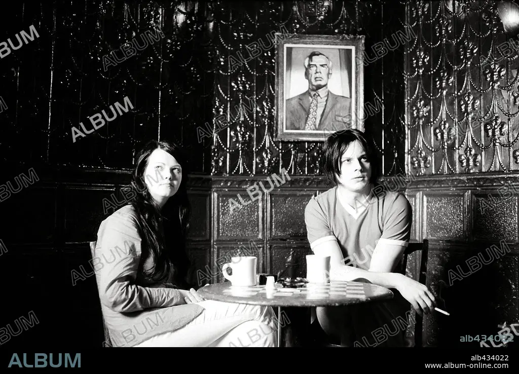 JACK WHITE and MEG WHITE in COFFEE AND CIGARETTES, 2003, directed by JIM JARMUSCH. Copyright UNITED ARTISTS / JARMUSCH, JIM.