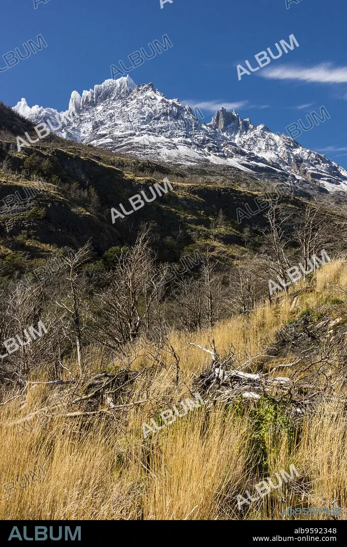 Caption: Punta Bariloche, 2600 metros, Cerro Paine Gragde, valle del lago Grey, trekking W, Parque nacional Torres del Paine,Sistema Nacional de Áreas Silvestres Protegidas del Estado de Chile.Patagonia, República de Chile,América del Sur