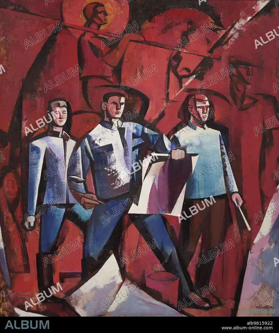 Caption: Ojars Abols (1922-1983). Latvian painter. The Proletariat Carrying the Sun. Latvian Artists in 1919, 1968. Oil on canvas, 1968 (225 x 200 cm). Latvian National Museum of Art. Riga. Latvia.