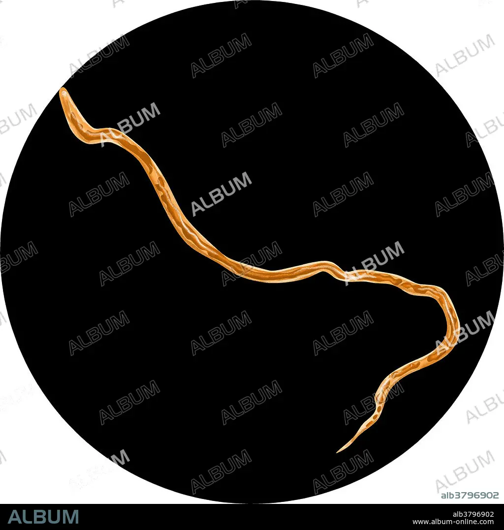 Caption: Illustration of adult onchocerca volvulus. The onchocerca volvulus worm causes river blindness, an eye and skin disease. The illness is spread by the bite of infected blackflies.