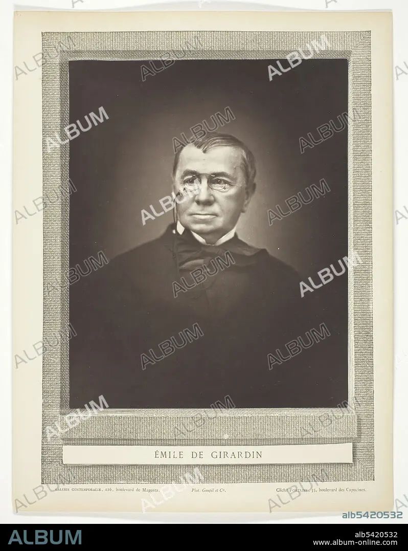 Caption: Emile De Girardin [French journalist, publicist and politician], 1875/77. Woodburytype, from the periodical "Galerie Contemporaine Littéraire, Artistique" (1877), volume 2.
