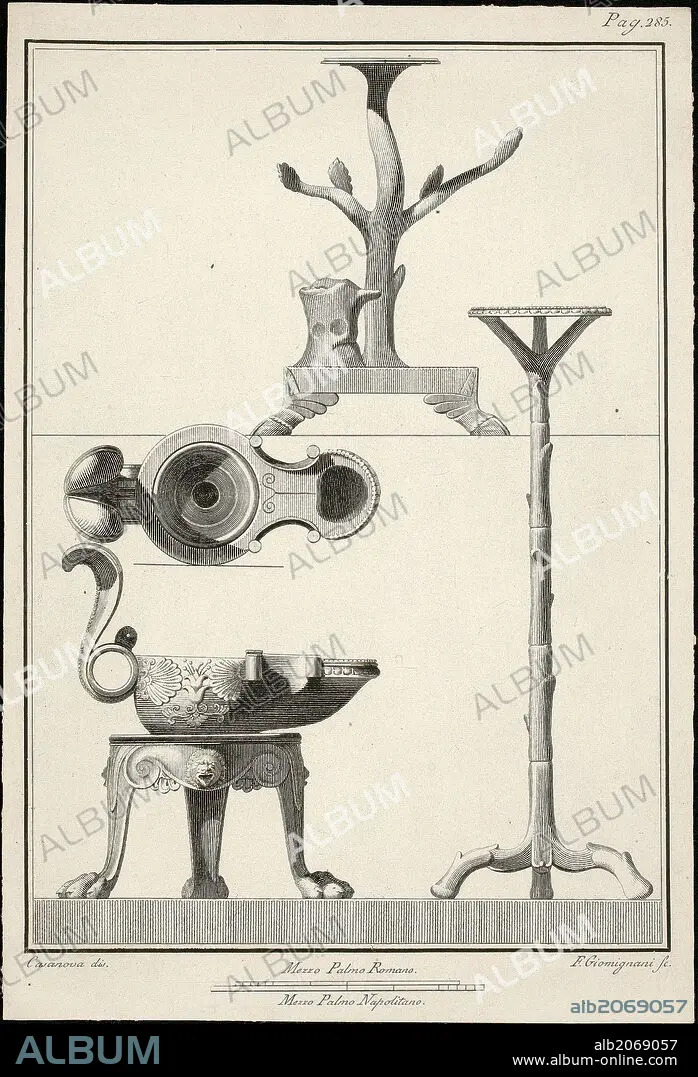 Artwork: Antigüedades de Herculano: pedestales en forma de árbol y trípode con patas de león