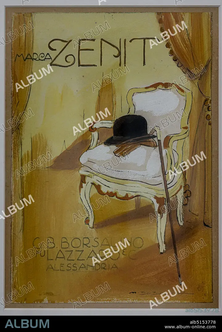 Caption: Zenit, advertising Illustration by Marcello Dudovich for the firm of Borsalino hats, 1910, sketch in pencil and watercolour on paper.