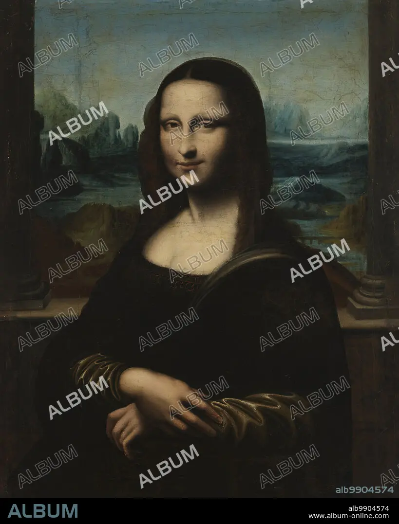 Caption: Copy of the "Mona Lisa", c1635-1660. Leonardo da Vinci (1452-1519) began a portrait of Lisa Gherardini about 1503 and then took with him to France, selling it to the French king in 1516. During the centuries that it remained in the royal collection it was copied many times. Some of the early copiests wanted to "complete" Leonardo's composition by introducing columns at the sides of the composition, since in the original, now in the Louvre Museum in Paris, we can see indications of the base of columns along each side. However, extensive technical examinations of the Louvre's panel and the paint along its edges have conclusively demonstrated that the painting was not cut down and therefore there were never columns along the side edges. So later copiests were trying to "improve" on what they saw!