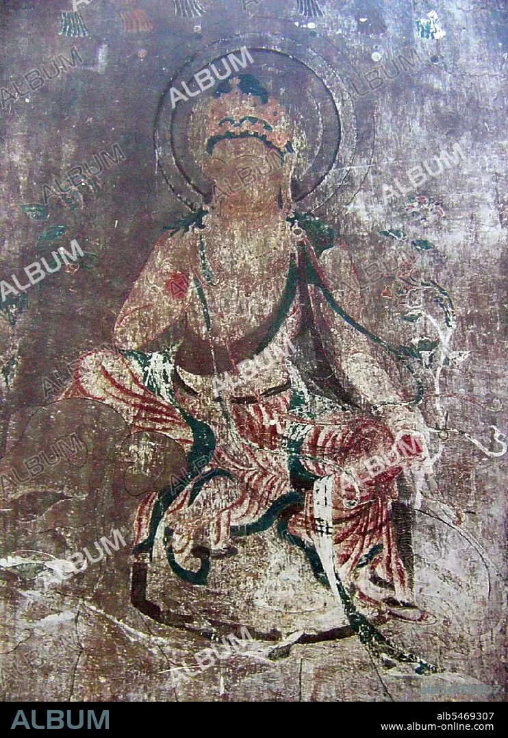 Title: Japan: Lost Horyuji Temple fresco from a pre-1949 photograph: No.11 wall, Samantabhadra, detail.