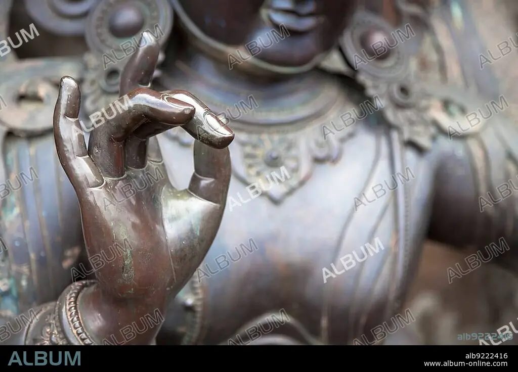 Caption: Karana mudra hand position expresses a very powerful energy with which negative energy is expelled. This hand gesture is also called warding off the evil. You can sense a very determined, focused energy just by looking at this hand gesture