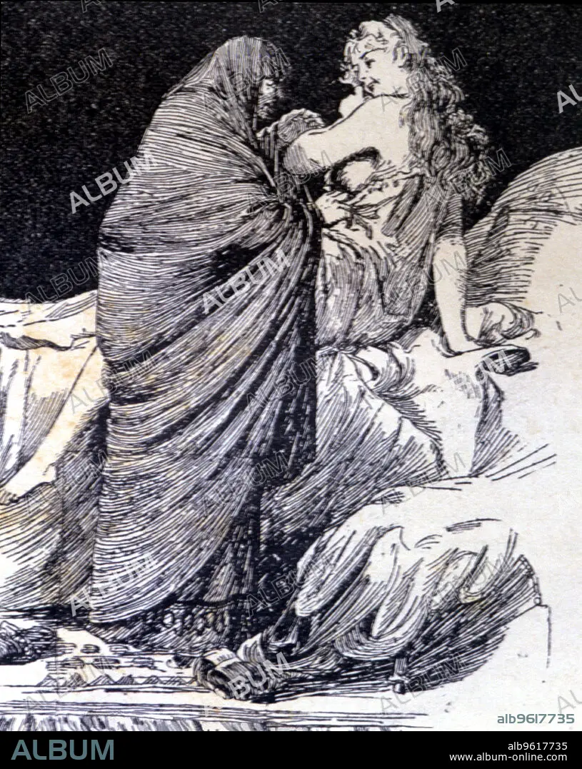'La Celestina wakes Melibea', engraving in 'La Celestina' by Fernando de Rojas, published in 1883.