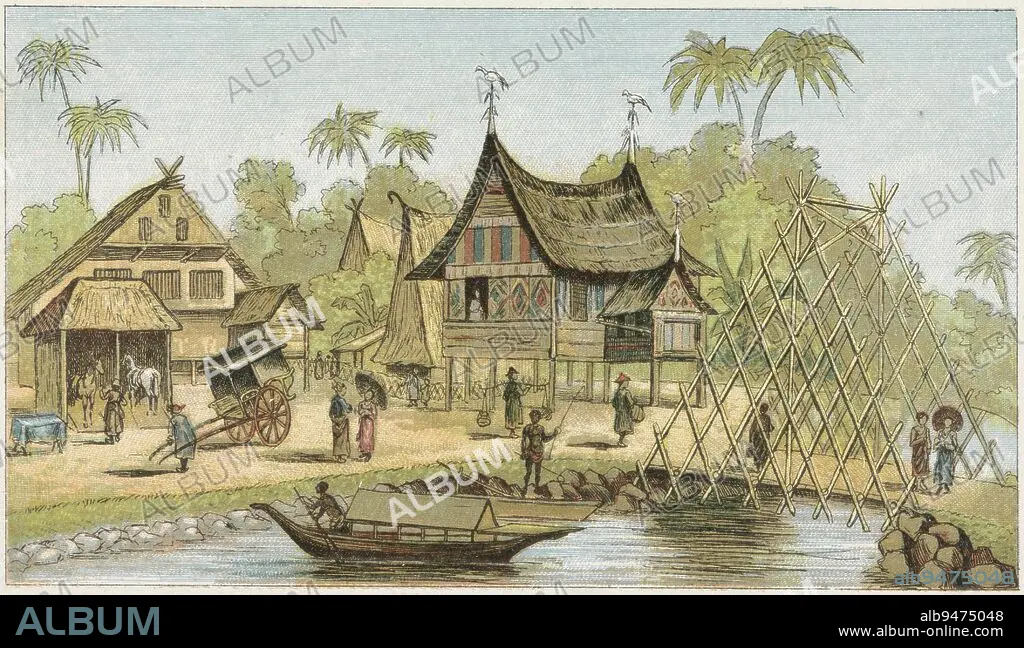 Caption: The Javanese village at the World's Fair on the Museumplein in Amsterdam Part of a group of sixteen plates and a map of the World Fair in Amsterdam from May 1 to October 1, 1883 Edition of the Nieuws van den Dag, Javanese Village at the World's Fair in Amsterdam, 1883 Javanese Village Reminder of Amsterdam in 1883 on object, print maker: anonymous, printer: Emrik & Binger, publisher: Het Nieuws van den Dag, print maker: Netherlands, printer: Netherlands, publisher: Amsterdam, 1883, paper, h 117 mm × w 180 mm
