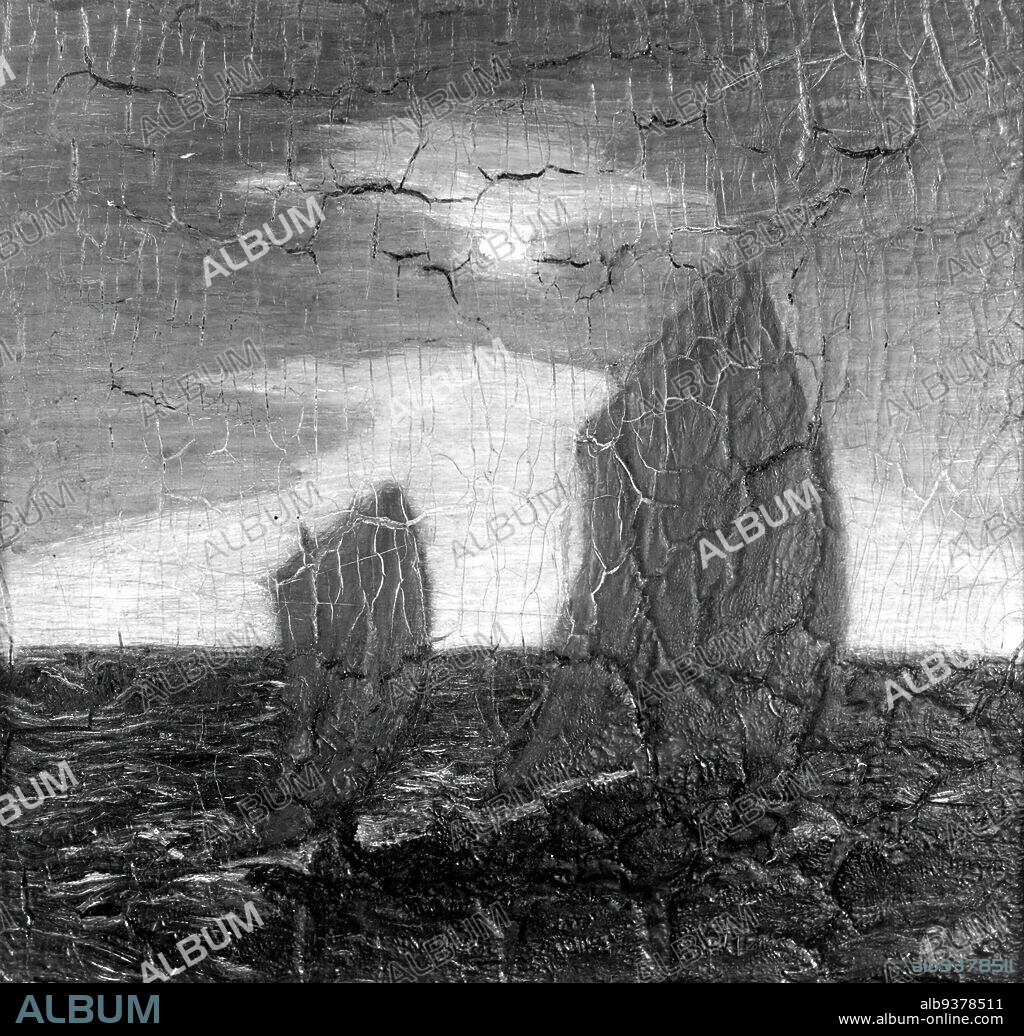 Marine, Moonlight, Albert Pinkham Ryder, American, 1847-1917, Oil on panel, 1890s, 11 3/8 x 12 1/16 in., 28.9 x 30.6 cm, 19th Century, Albert Pinkham Ryder, American, birds, Boat, boats, cracking, lug rig, Marine, Marine Moonlight, mess, Moon, Night, Nocturnal, ocean, Oil, oil on panel, Painting, Ryder, sailboats, sailing, sails, sea, Seascape