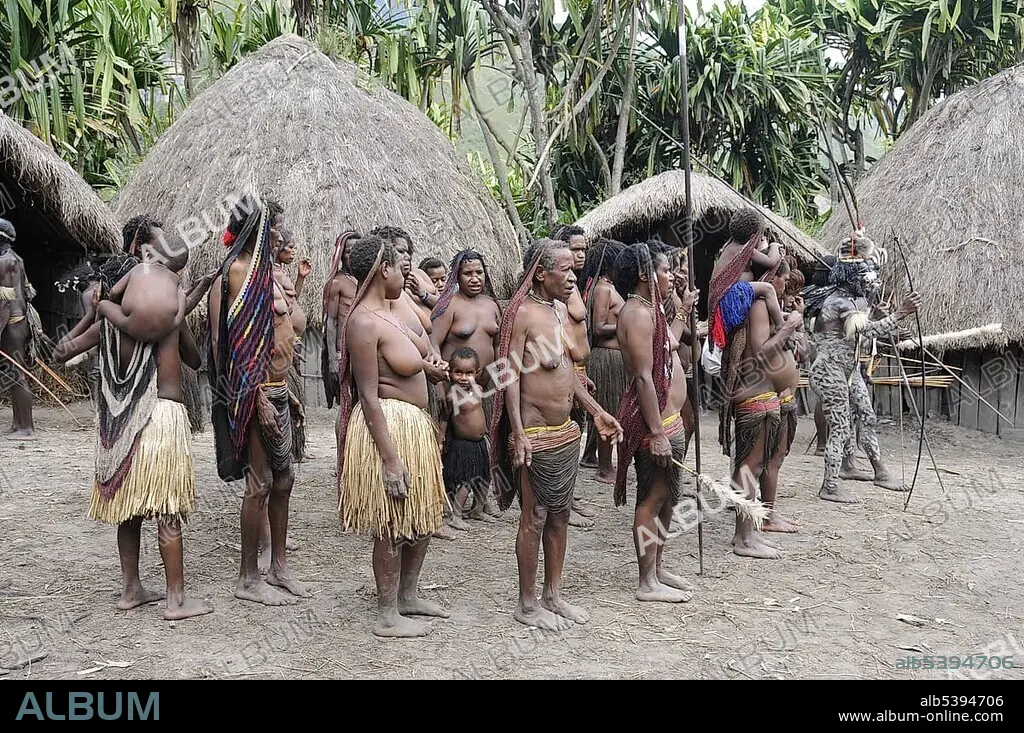 Caption: Dani women in a village, Yiwika, Baliem Valley, Irian Jaya, New Guinea, West Guinea, Indonesia, Southeast Asia, Asia