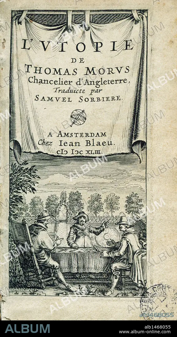 Caption: Thomas More (1478-1535). English politician and humanist. Utopia, 1516. Tittle cover. French edition. Printed in Amsterdam by Jean Blaeu, 1642.