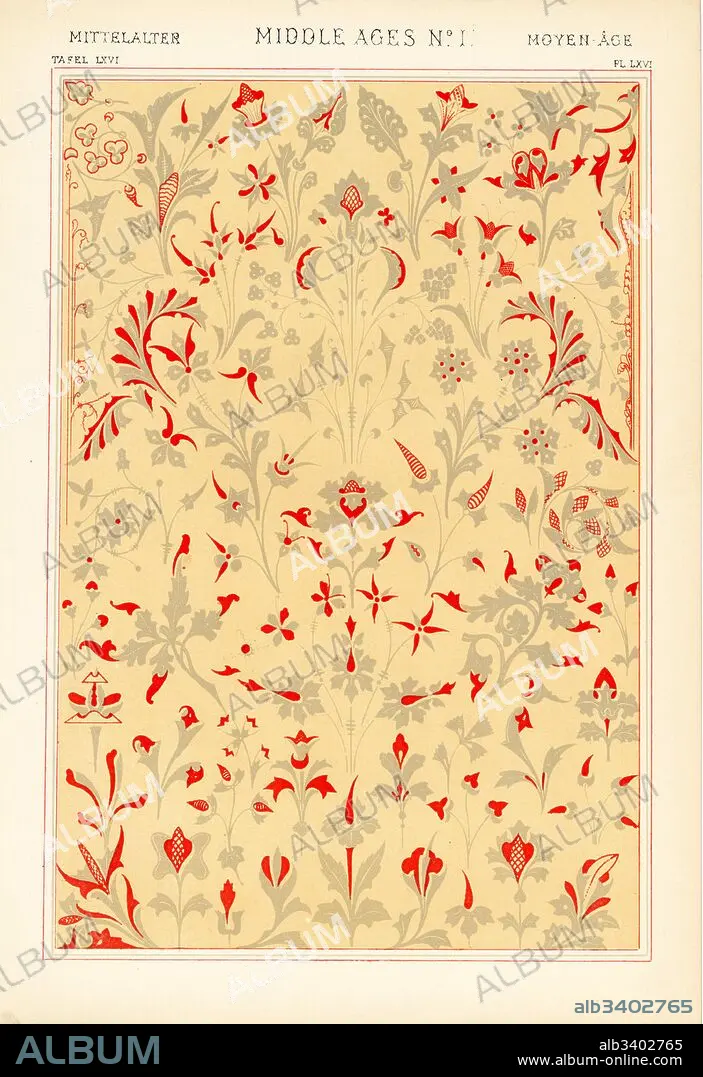 Conventional leaves and flowers from an illuminated manuscript, Middle Ages. Chromolithograph by Francis Bedford from Owen Jones' The Grammar of Ornament, Quaritch, London, 1868.