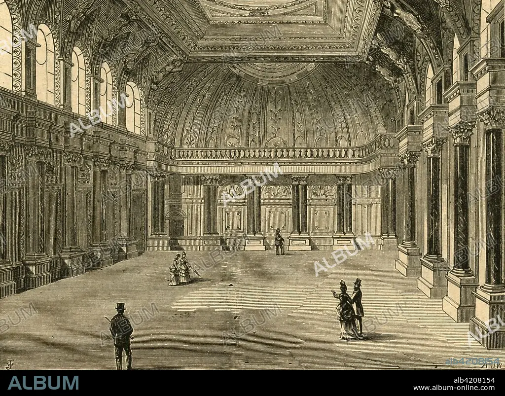 Caption: 'Interior of Drapers' Hall', 1897. Headquarters of the Worshipful Company of Drapers, one of the livery companies of the City of London. The Hall was rebuilt twice, the first time after it was destroyed by the Great Fire in 1666, and again in 1772 after another fire which did considerable damage. In the 1860s, the frontage was changed and the interior altered by Herbert Williams. From Old and New London, Volume I, by Walter Thornbury. [Cassell and Company, Limited, London, Paris & Melbourne, 1897]