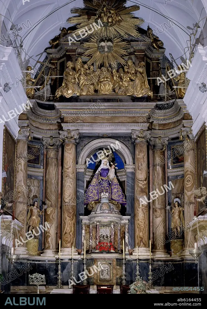 TORCUATO BENJUMEDA / COSME VELAZQUEZ. RETABLO MAYOR CON LA IMAGEN DE LA VIRGEN DEL ROSARIO REALIZADO A FINALES DEL SIGLO XVIII