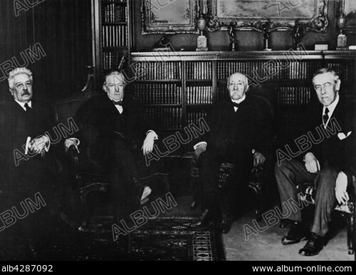 Caption: World War One.. The "Great Leaders" before the peace conference (1919).. From left to right : Vittorio Orlando (for the Italians), Lloyd George (for the English), Georges Clémenceau (for the French), Woodrow Wilson (for the Americans).