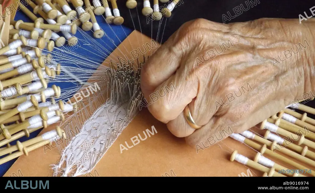 Caption: Lace making in Bruges, 2014. The intricate lace patterns in Belgium are unmatched in any other country. The lace trade rose during the early Renaissance. Emperor Charles V decreed that lace-making should be a compulsory skill for girls in convents and beguines throughout Flanders. Lace became fashionable on collars and cuffs for both sexes. Trade reached a peak in the 18th century. Lace makers are traditionally women. Hundreds of craftswomen still work in Bruges and Brussels, centres of bobbin lace, creating intricate work by hand, often using over 100 threads per bobbin.