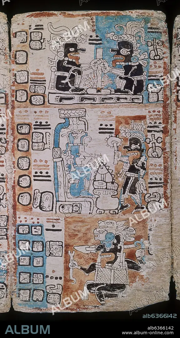 Automatic translation: PAGE OF THE TRO-CORTESIAN OR MADRID CODICE - MAYAN CODICE MADE BETWEEN THE XIII AND XV CENTURY - GODS AND MEN, CONJ. 002294