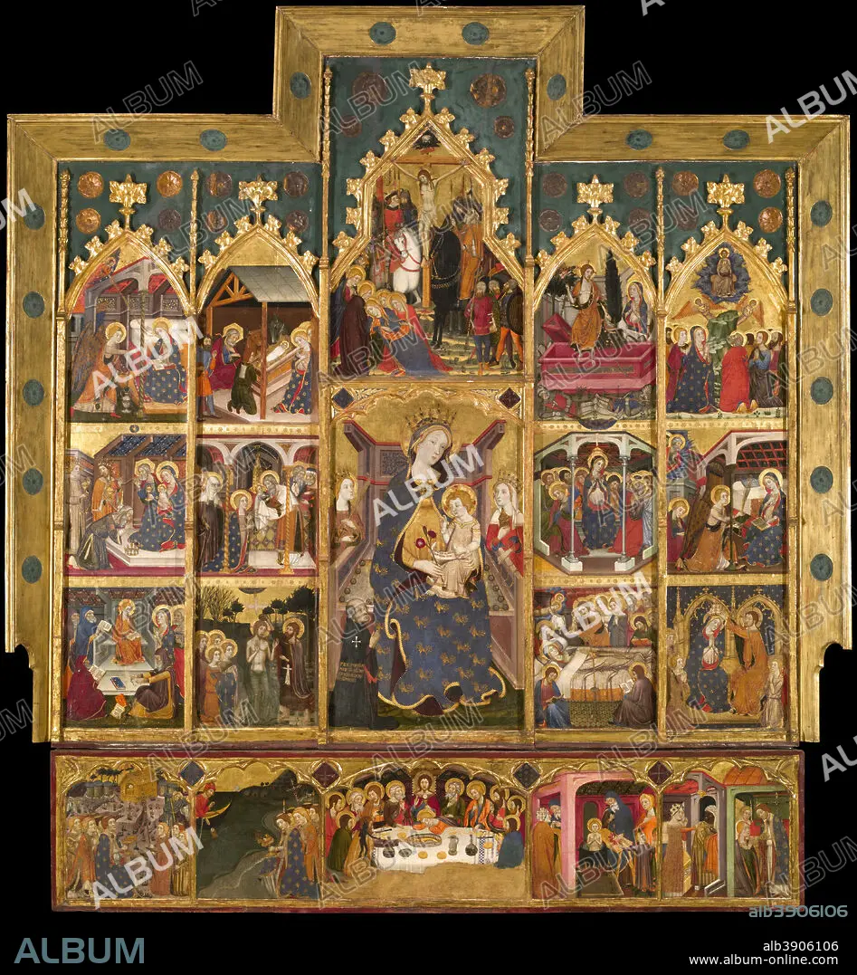 Caption: Altarpiece of the Virgin. Date/Period: Ca. 1367-1381. Painting. Tempera, gold leaf and metal plate on wood. Height: 3,463 mm (11.36 ft); Width: 3,210 mm (10.53 ft).