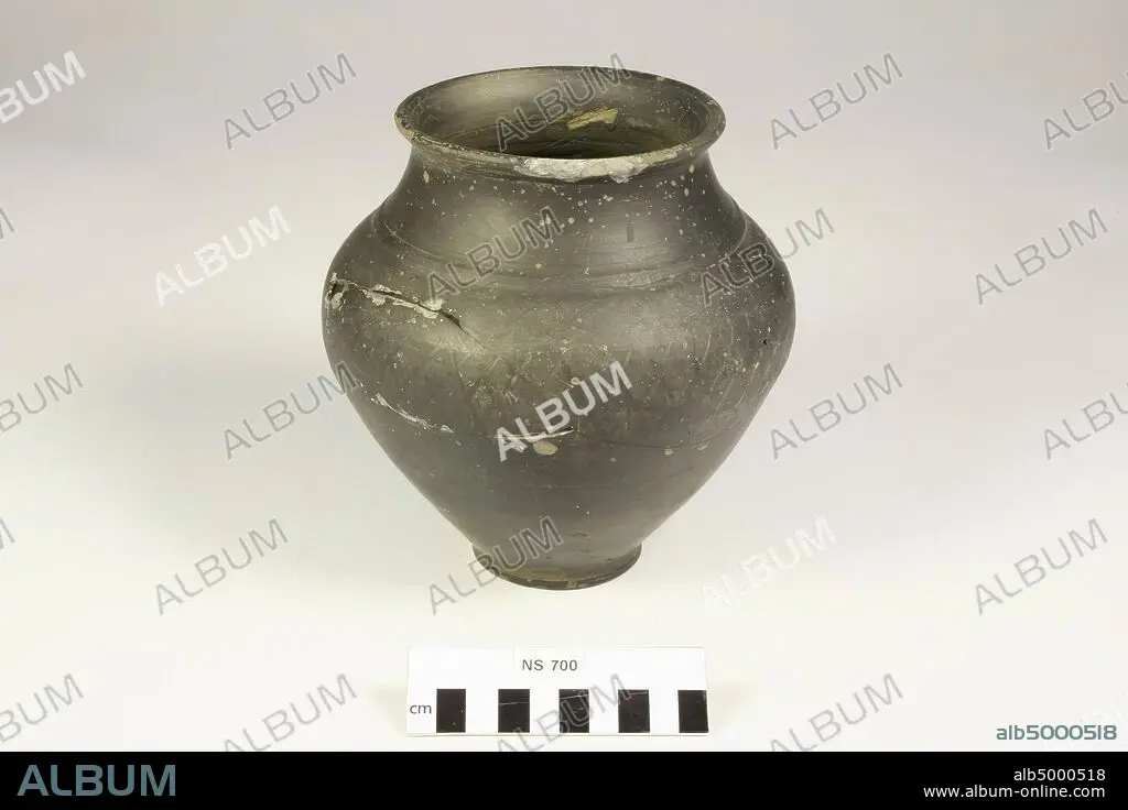 Caption: The Netherlands Roman period, pot, pottery, terra nigra, h, 17.8 cm, diam, 16.5 cm, roman, the Netherlands, Gelderland, Nijmegen, Nijmegen, Hunnerberg