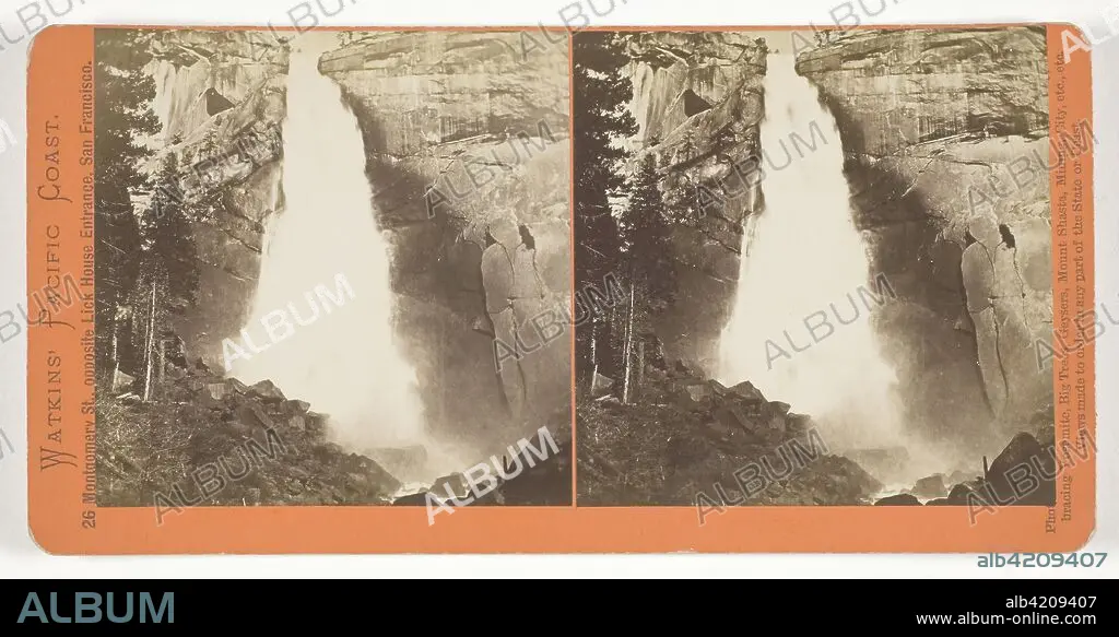 The Nevada Fall, 700 ft., Yosemite. Carleton Watkins; American, 1829-1916. Date: 1861-1876. Dimensions: 7.8 x 7.8 cm (each image); 8.7 x 17.6 cm (card). Albumen print, stereo, from the series "Watkins' Pacific Coast". Origin: United States.
