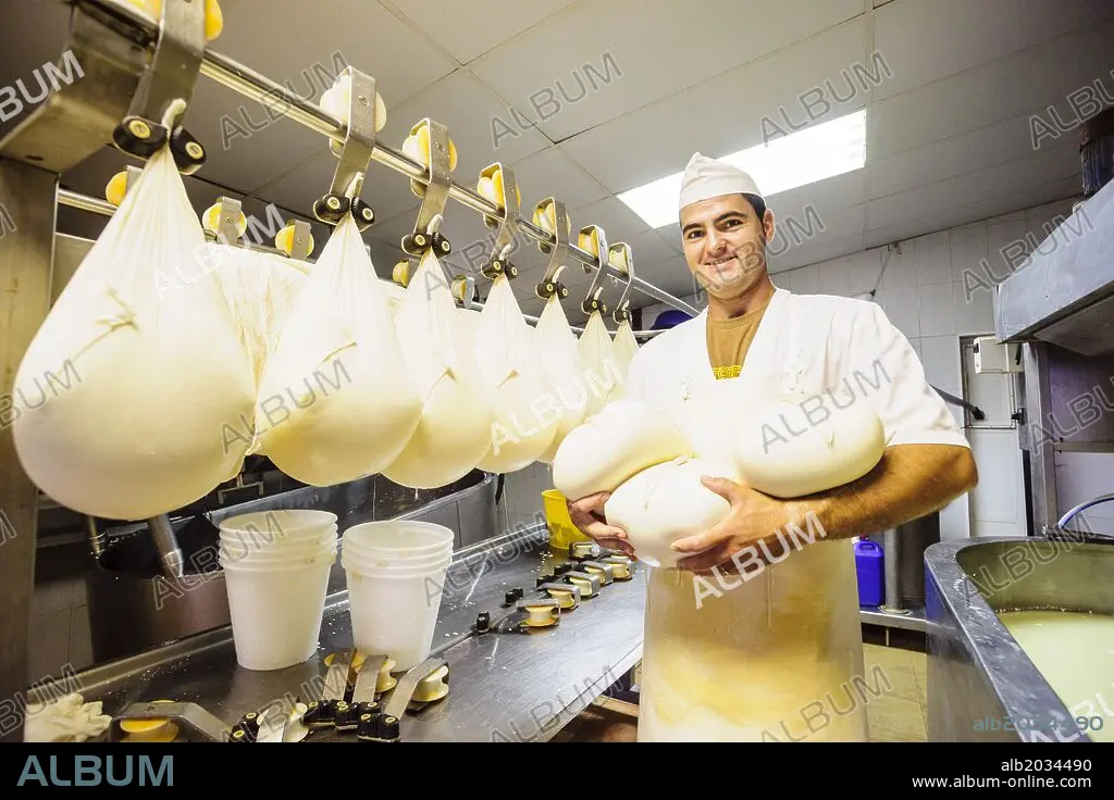 Automatic translation: Artisanal manufacture of Binigarba cheese - Artisan Mahon denomination of origin - Binigarba estate, Ciutadella, Menorca, Balearic Islands, Spain, Europe