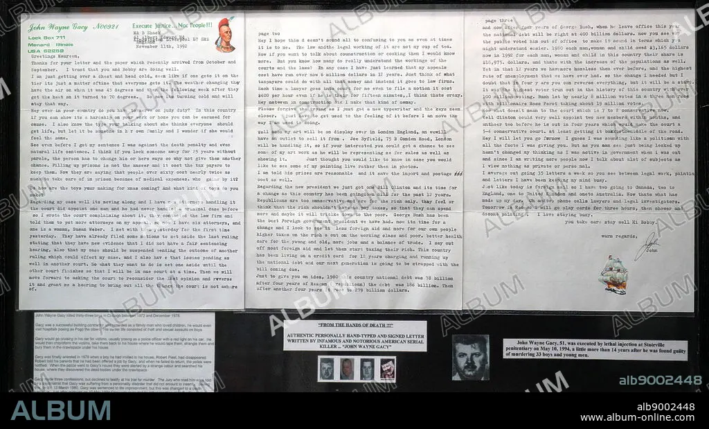 Caption: Hand-typed letter written and signed by John Wayne Gacy. John Wayne Gacy Jr. (1942-1994) an American serial killer and rapist during the 1970s.