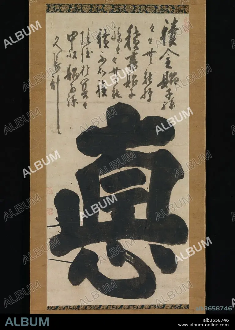 This oversize rendition of the character for "virtue" (toku ?) reflects the exuberant spiritual energy projected by Ekaku, who was one of the foremost proponents of the revival of the Rinzai sect of Zen Buddhism in late Edo-period Japan. Originally composed by Chinese historian and Confucian scholar Sima Guang (1018-1086), the inscription reads: