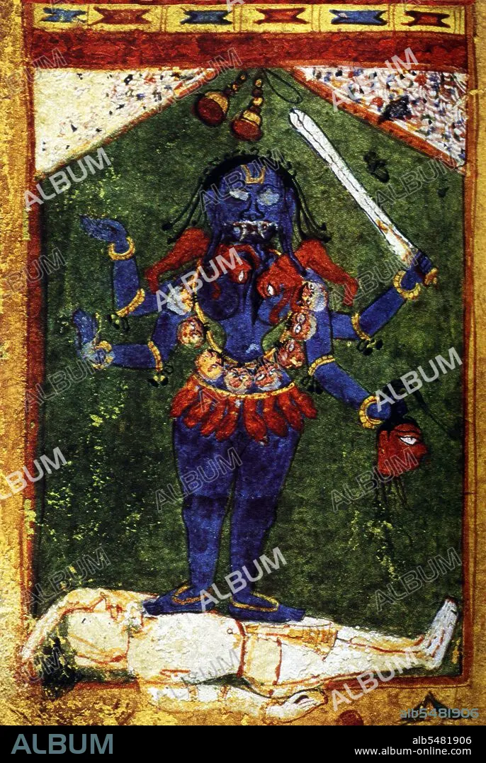 Title: India: Miniature painting of the Goddess Kali, north India,16th century