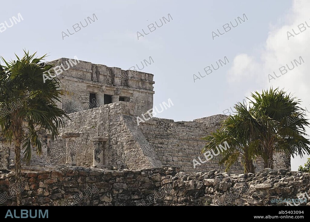 The Castle, El Castillo, Tulum, Mayan archaeological excavation, Quintana Roo, Yucatan Peninsula, Mexico, Central America.