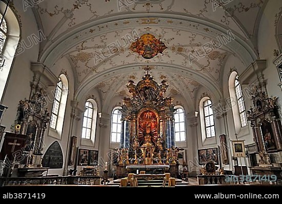 Altar room with a vaulted ceiling of the Parish Church and Pilgrimage Church of the Assumption of Mary, Großgmain, Salzburg State, Austria, Europe.