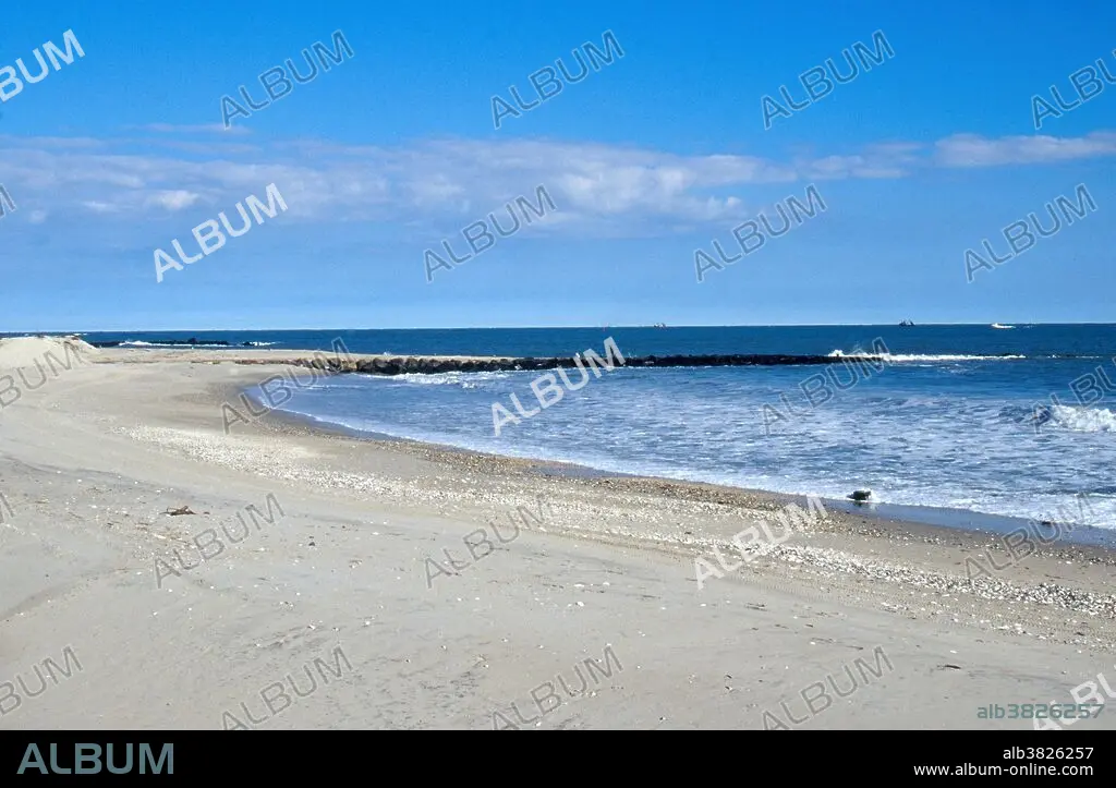 Atlantic City, New Jersey beach with a jetty to control erosion.