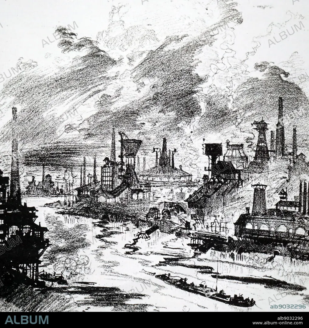 Title: Engraving depicting what environmental pollution during the 1950s would look like
