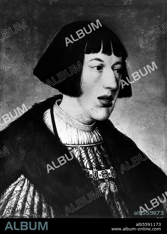 Ferdinand Ier, empereur romain germanique (1556-64), à partir de 1526 roi de Bohème et Hongrie, à partir de 1531. roi de Rome et remplaçant de son frère Charles Quint à la tête de l'empire ; Alcala de Henarès 10.3.1503 - Vienne 25.7.1564. - Portrait de Ferdinand en archiduc. Peinture, v. 1520, de Hans Maler. Vienne, Kunsthistorisches Museum.