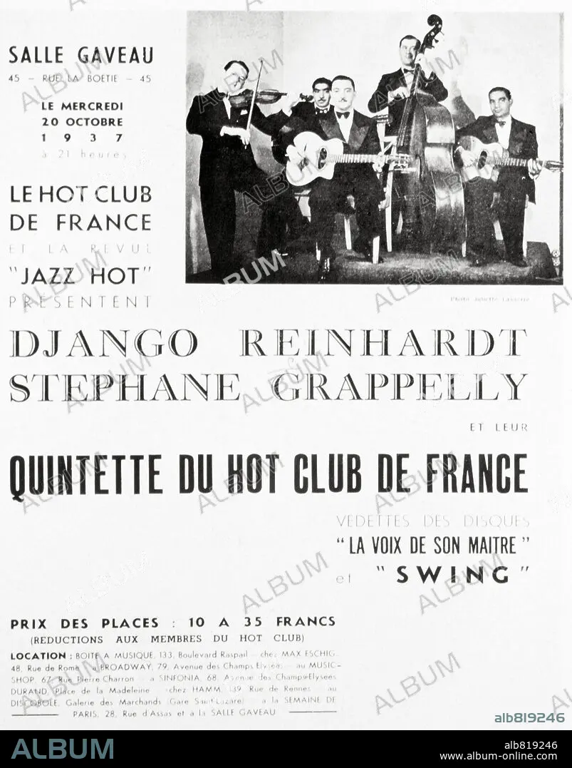 Caption: Advertisement for the Quintet Hot Club of Paris, France, 1937. Stephane Grappelli (1908-1997) prominent French Jazz violinist in Europe for "Le Jazz hot" in the 30´s 1937.